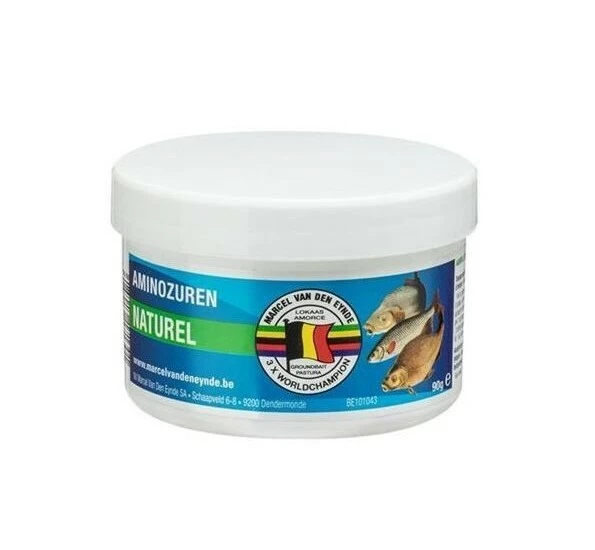 Het team van Marcel Van Den Eynde heeft besloten om de aminozuren in het gamma uit te breiden. Aminozuren zijn een heel interessante meerwaarde aan uw lokaasmengeling. We merkten in onze testverslagen op dat aminozuren enkel de aandacht hadden van de karpers en enkele brasems, maar niet van de voorns.