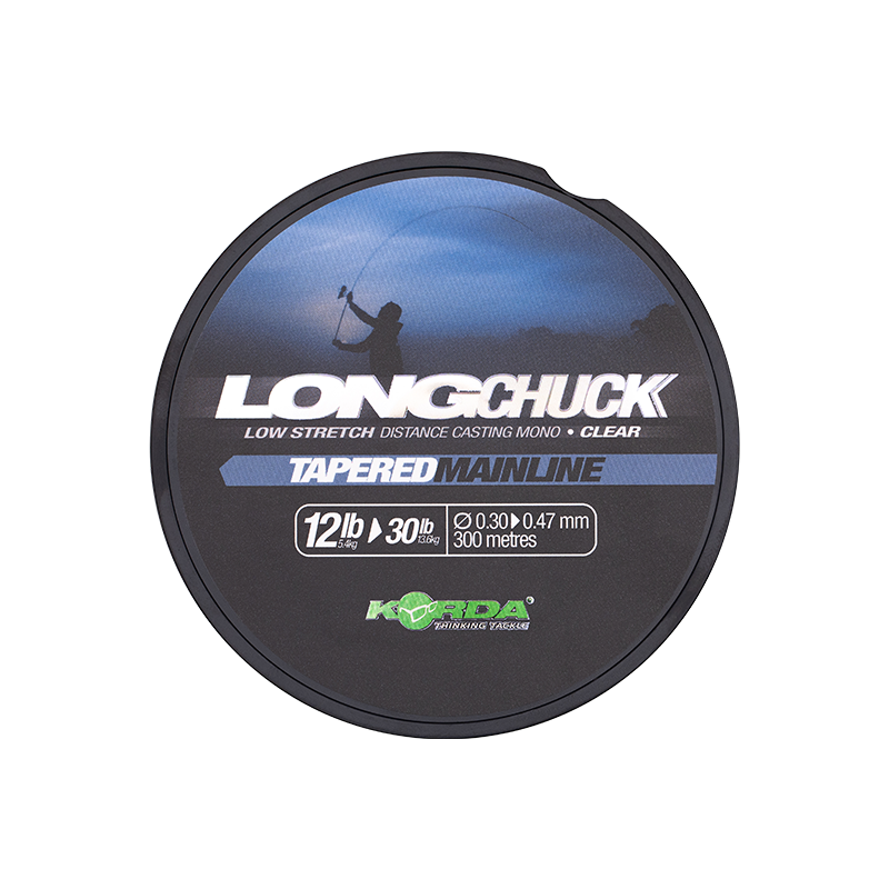 De Korda LongChuck Tapered Mainline is 300 meter lang, en aan beide kanten getaperd. Dat wil zeggen dat de lijn op beide uiteinden over een lengte van 8 meter dikker wordt en dus als voorslag kan dienen. Hierdoor is dit ideaal om afstanden te werpen of wanneer je bij obstakels vist. Voorslagknopen zijn immers niet meer nodig!