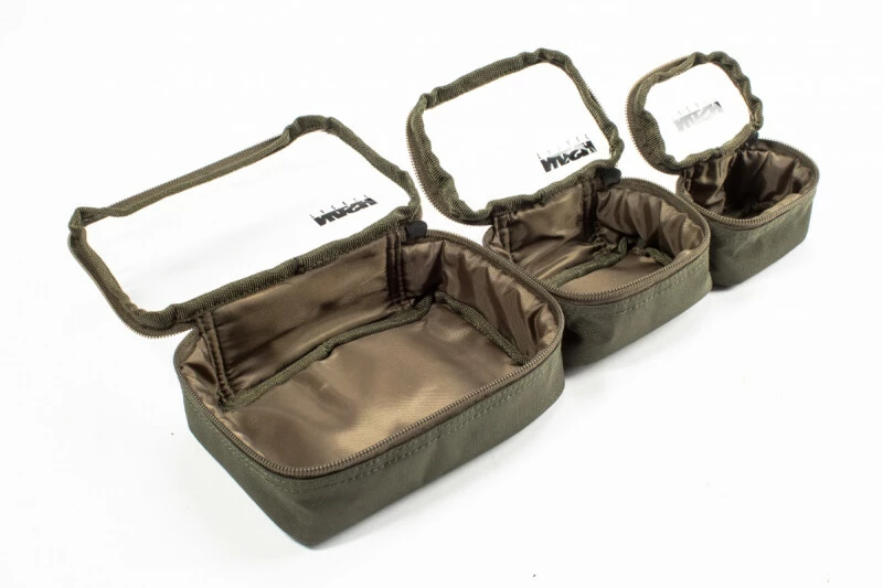 Bevat drie waterbestendige tasjes met een doorschijnende bovenkant om materiaal gaande van spoelen en spods tot PVA en klein materiaal in op te bergen en makkelijk terug te vinden.